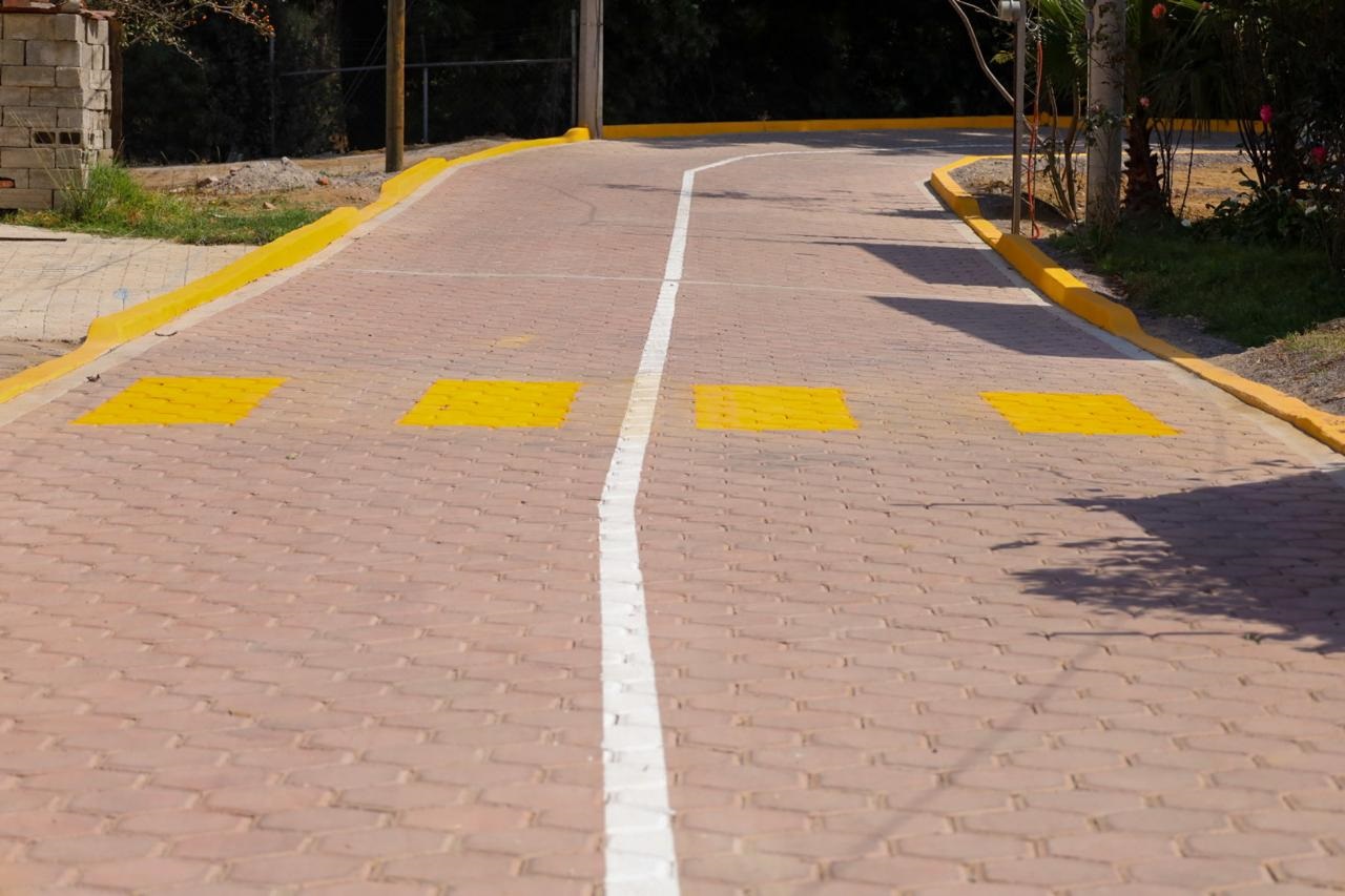 Además de la pavimentación, la Dirección de Obra completó los trabajos con guarniciones, señalamientos para regular el tránsito vehicular y de peatones, así como la red de drenaje sanitario con la construcción de 87.60 metros lineales, dos pozos de visita y nueve descargas domiciliarias.